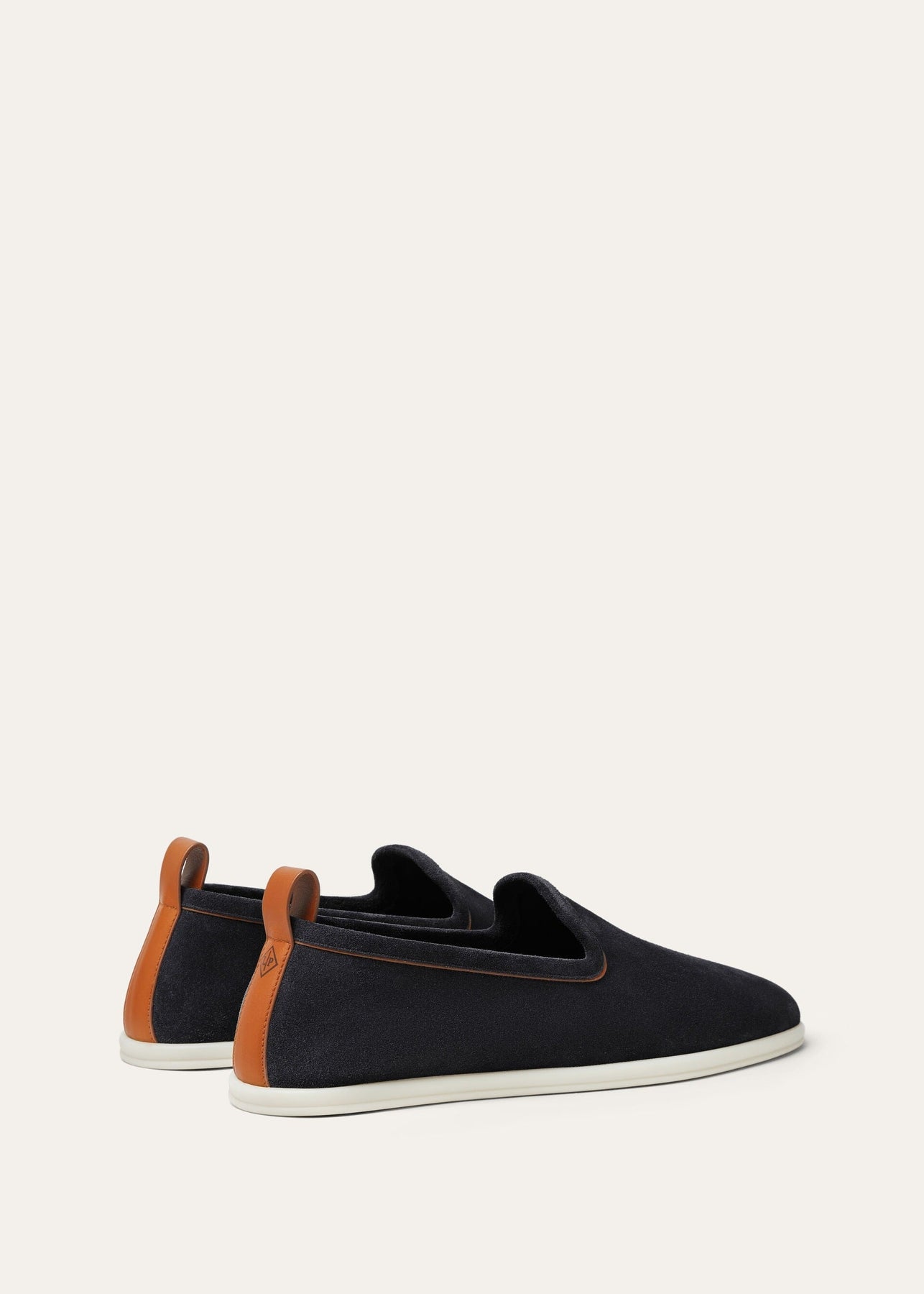 Inspired by classic slipper loafers, the Venice Walk combines artisanal luxury with the versatility of iconic footwear. Crafted from supple, lightweight suede using the finest part of the hide, it achieves the perfect balance of softness and thickness. Featuring natural-colored collapsible leather heels and slightly elongated toes, the design recalls LRP’s iconic Summer Walk style.