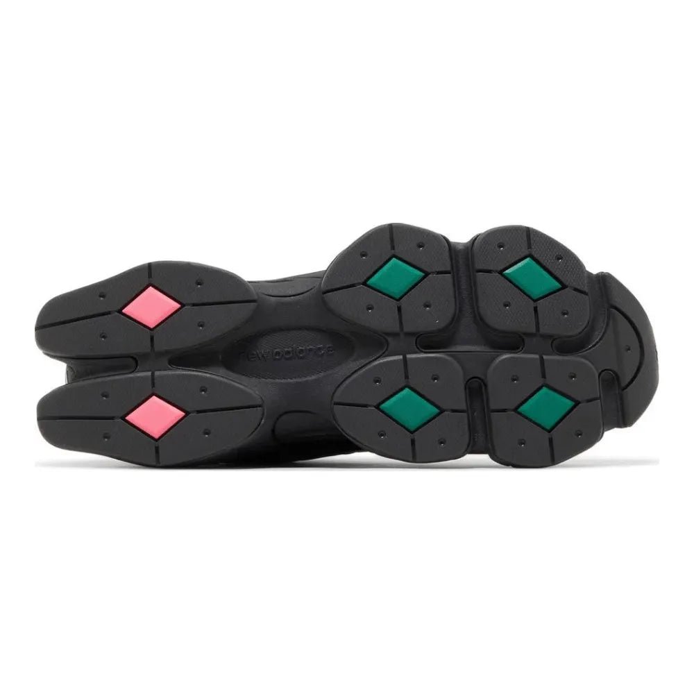 The MWL x NB 9060 “Burglarwear Teal” blends futuristic design with bold detailing. A breathable black mesh upper is reinforced with sleek black leather overlays, delivering durability and structure to the iconic silhouette. Striking teal accents highlight the lateral and medial “N” logos, forefoot, and eyelets, ensuring these statement sneakers turn heads with every step.