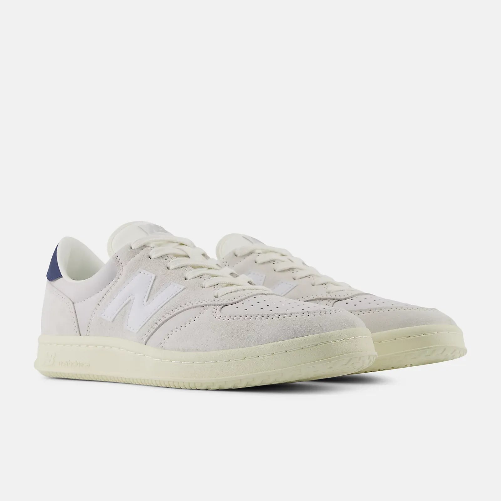 The NB T500 revives a classic tennis silhouette in a low-profile build with clean paneling. The upper features suede with synthetic details for structure and durability, plus perforation at the toe for breathability and a padded collar for step-in comfort. Underfoot, a cushioned cupsole delivers steady support and everyday traction.