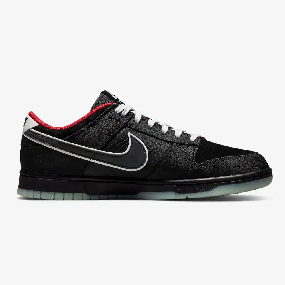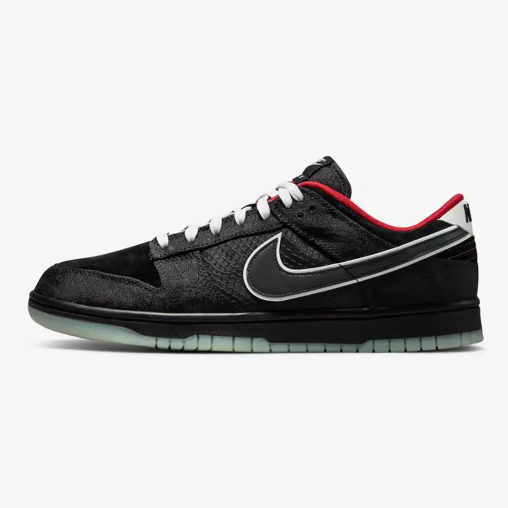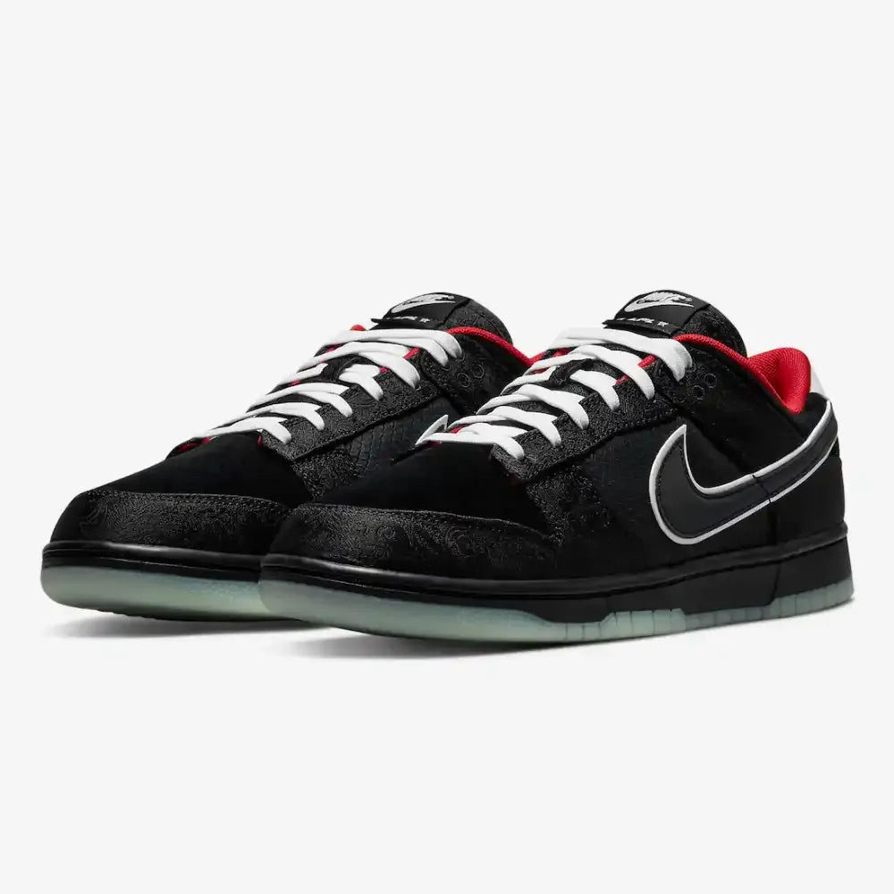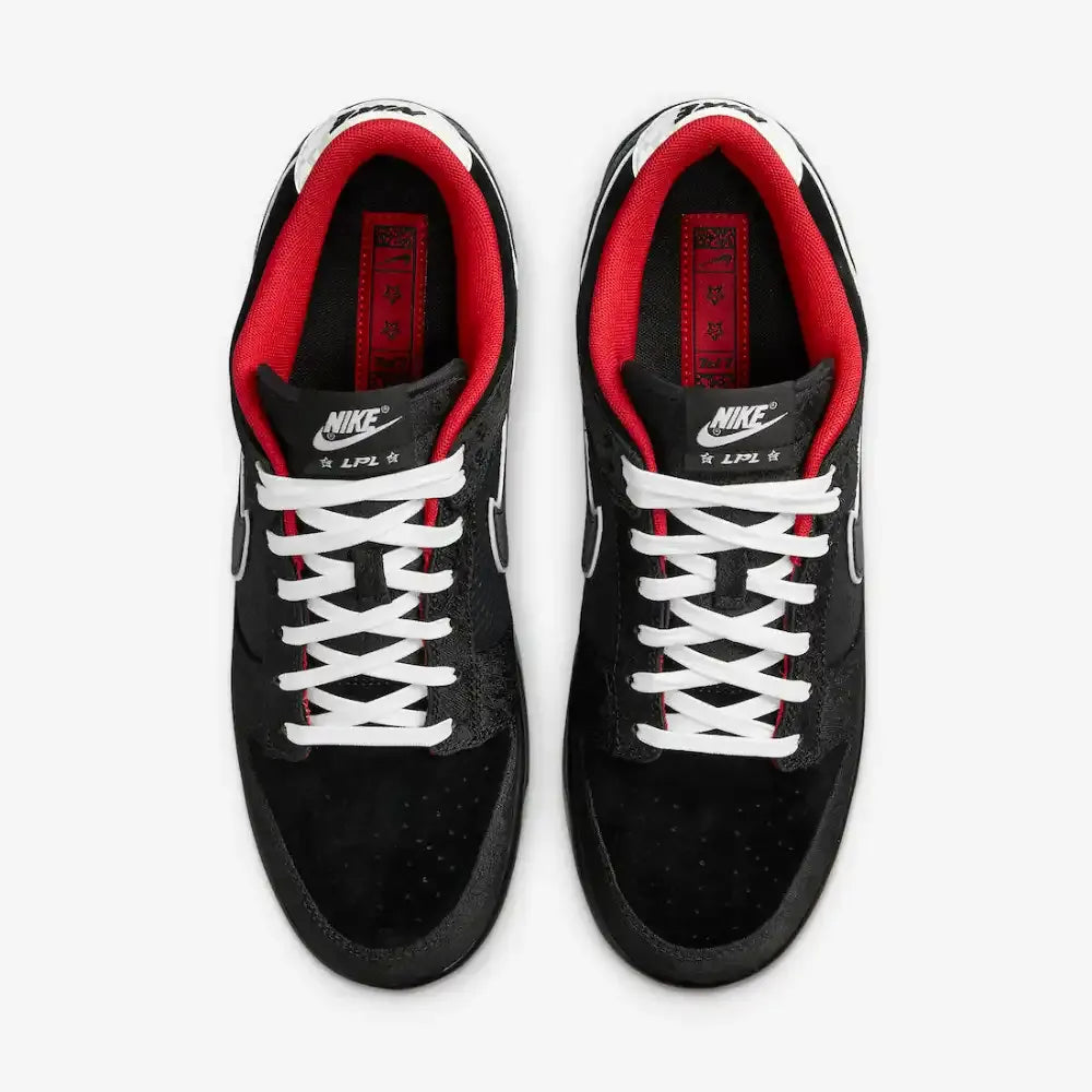The NK Dunk Low LPL League of Legends is a limited-edition sneaker designed in collaboration with China’s professional e-sports league. Built with a mix of leather and synthetic materials, the upper showcases a striking pixelated black-and-white camo pattern, accented by bold crimson details.
