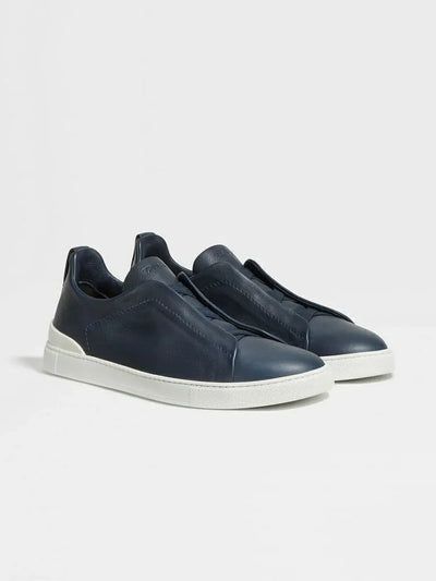 ZGN Triple Stitch Navy Blue Leather Sneakers